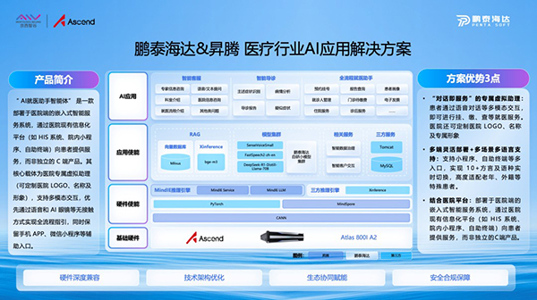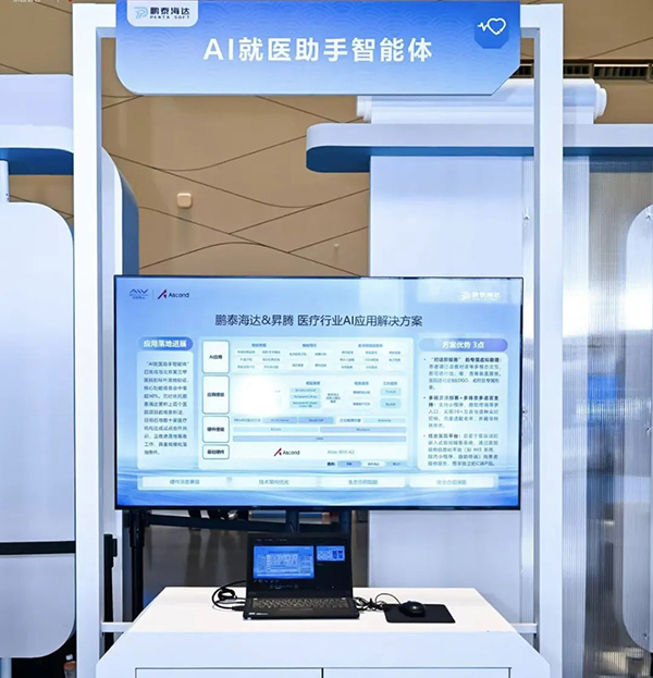 在本次大会的AI+行业体验区内,鹏泰海达重点展示了与昇腾联合打造的AI就医助手智能体。